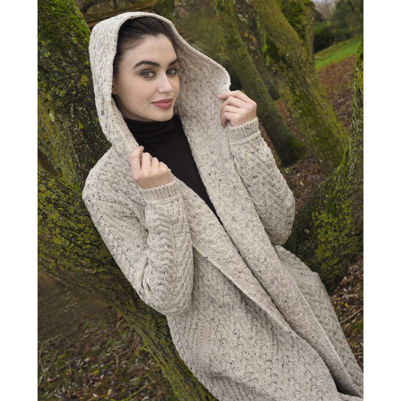 This Mayo Herringbone Shawl with Hood is made from 100% Merino Wool. Edge to edge design with shawl collar. It is knitted with the traditional Herringbone pattern. Side slits and insert pockets for extra comfort. Easy to wear, comfy piece of Irish knitwear perfect to wear all year round.