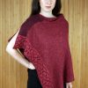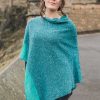 Knitted in soft merino wool, the Mull Cape combines a striking shape with lovely Celtic detailing. The rowled cowl neck features a subtle rib picked out in a color to complement the Celtic motif along the hemline. Knitted along the shoulder seam, the fabric drapes beautifully off your shoulders and hangs long to a peak in the front and rear.