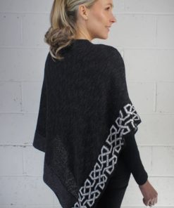 A fresh take on the Wallace shawl, the Ballater features a new Celtic pattern. One size fits all and can be worn in any number of styles. Wear it loose around your neck as shown, similar to a pashmina or shawl. If you want to dress it up a little you can pin with a brooch at the shoulder and wrap one edge round your shoulders.