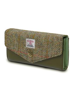 This Large Clasp Purse is durable and classically stylish, made from authentic Harris Tweed woven in the Outer Hebrides. It has a rotating clasp closure and PU leather interior. The interior features two full length open pocket for notes to comfortably fit all of your essentials. Available in a range of neutral tones to suit all tastes.