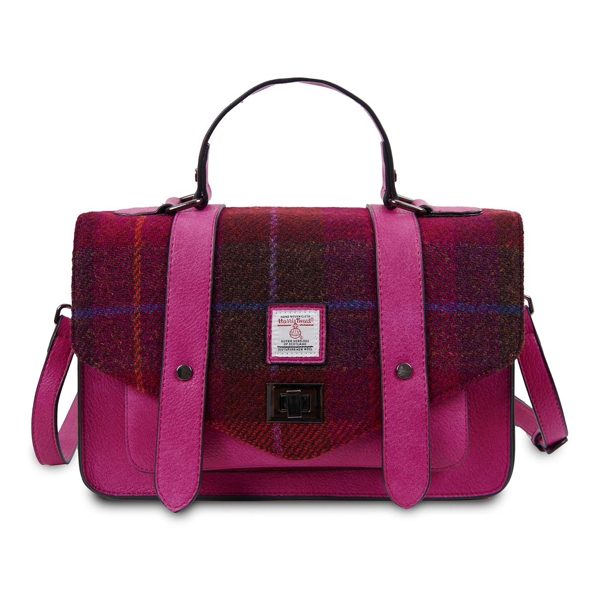 Islander Large Satchel Bag with HARRIS TWEED – Fuchsia Tartan