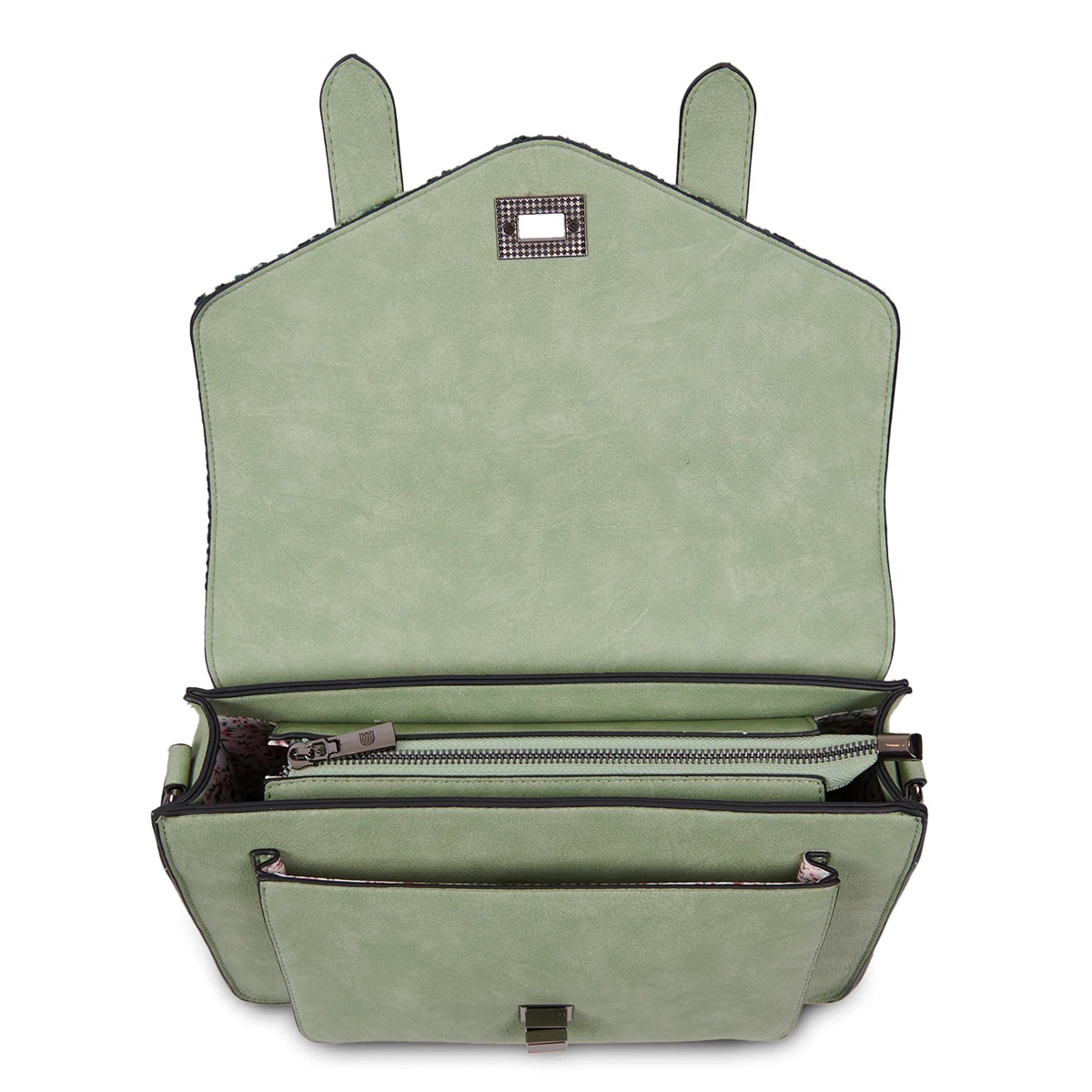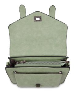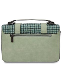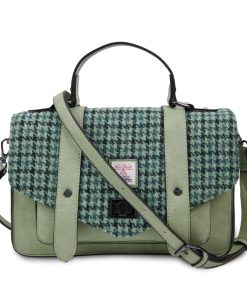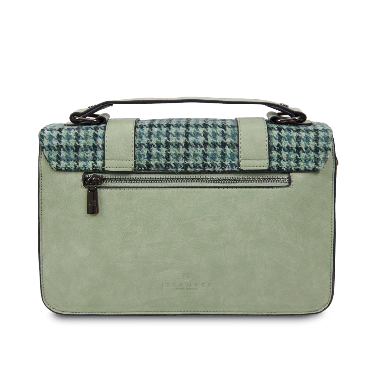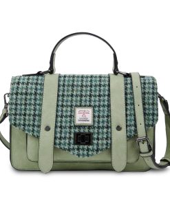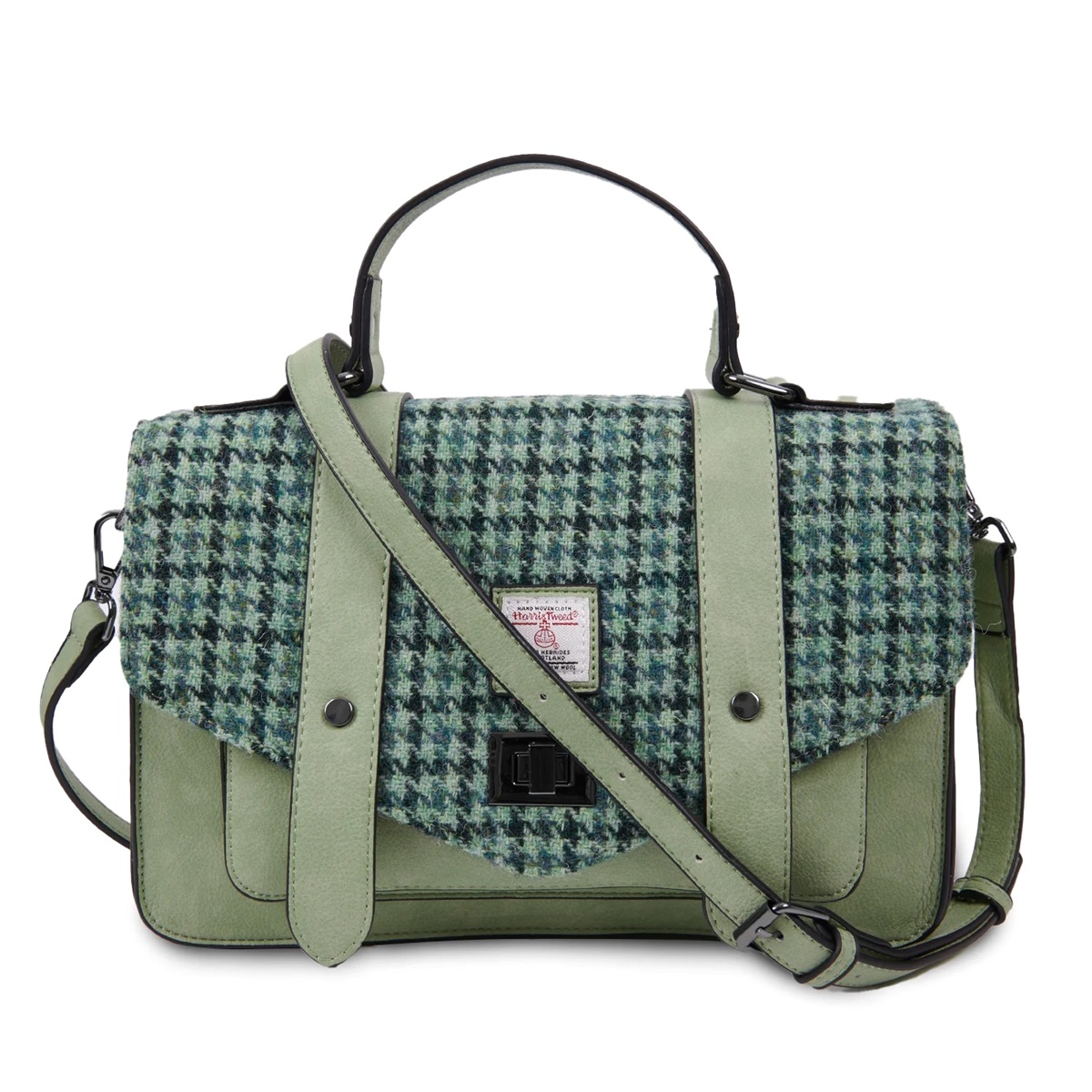 Islander Large Satchel Bag with HARRIS TWEED – Green Dogtooth