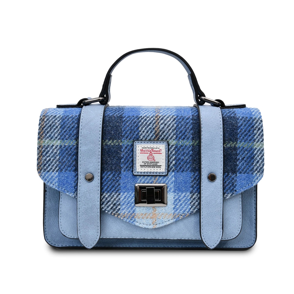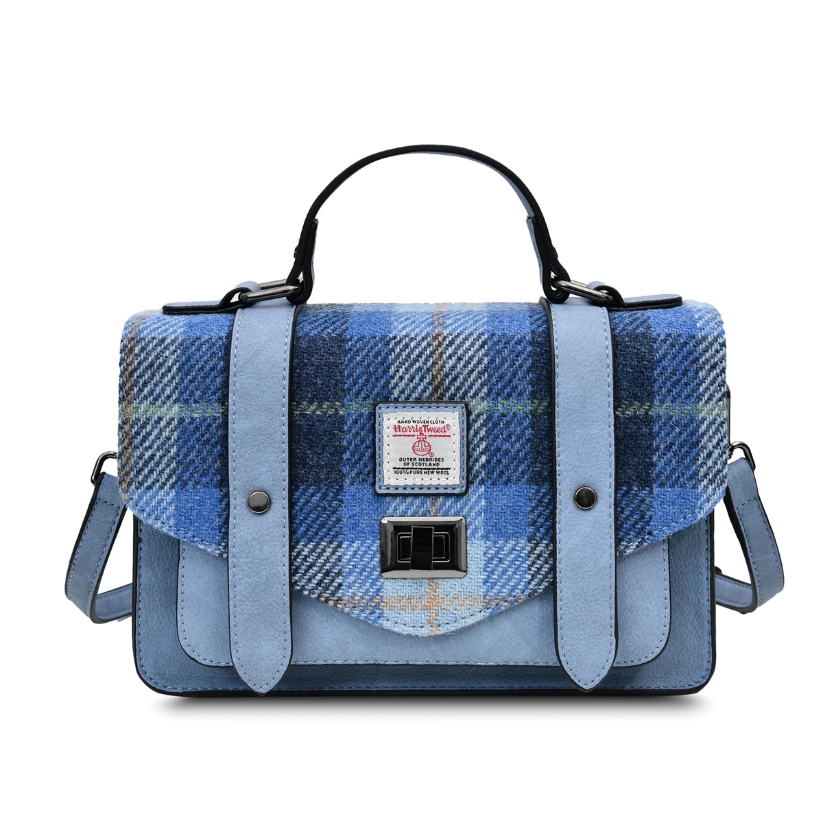 Islander Medium Satchel Bag with HARRIS TWEED – Blue Tartan