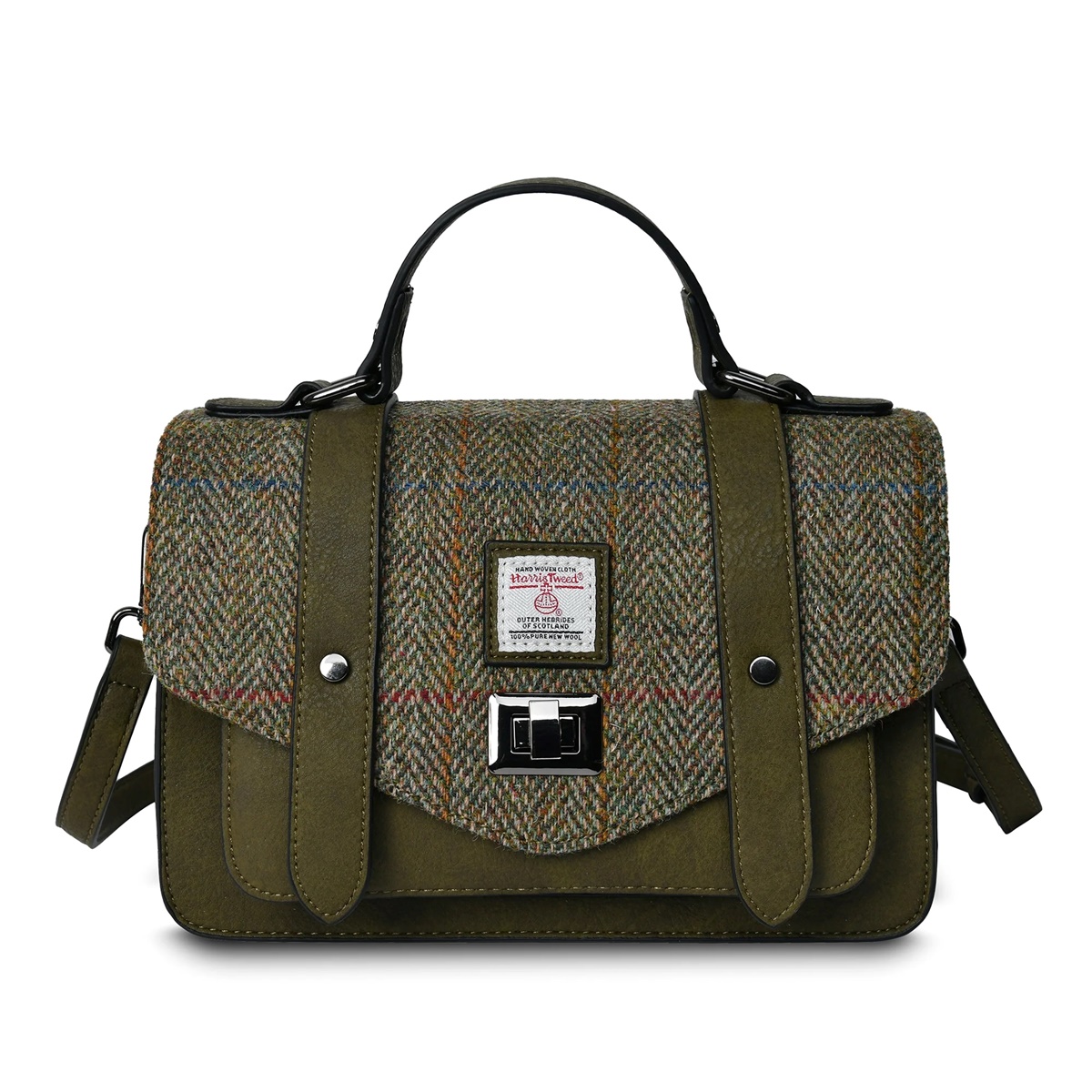 Islander Medium Satchel Bag with HARRIS TWEED – Chestnut Herringbone