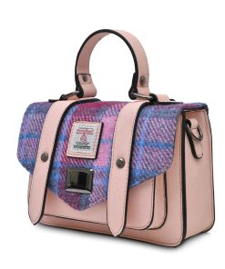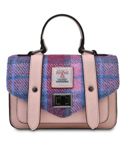 Islander Mini Satchel Bag with HARRIS TWEED – Pink and Blue Tartan