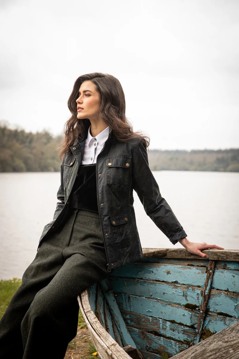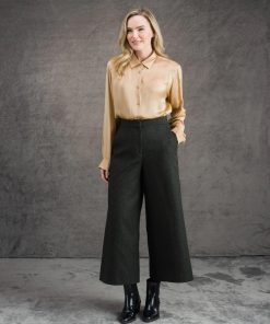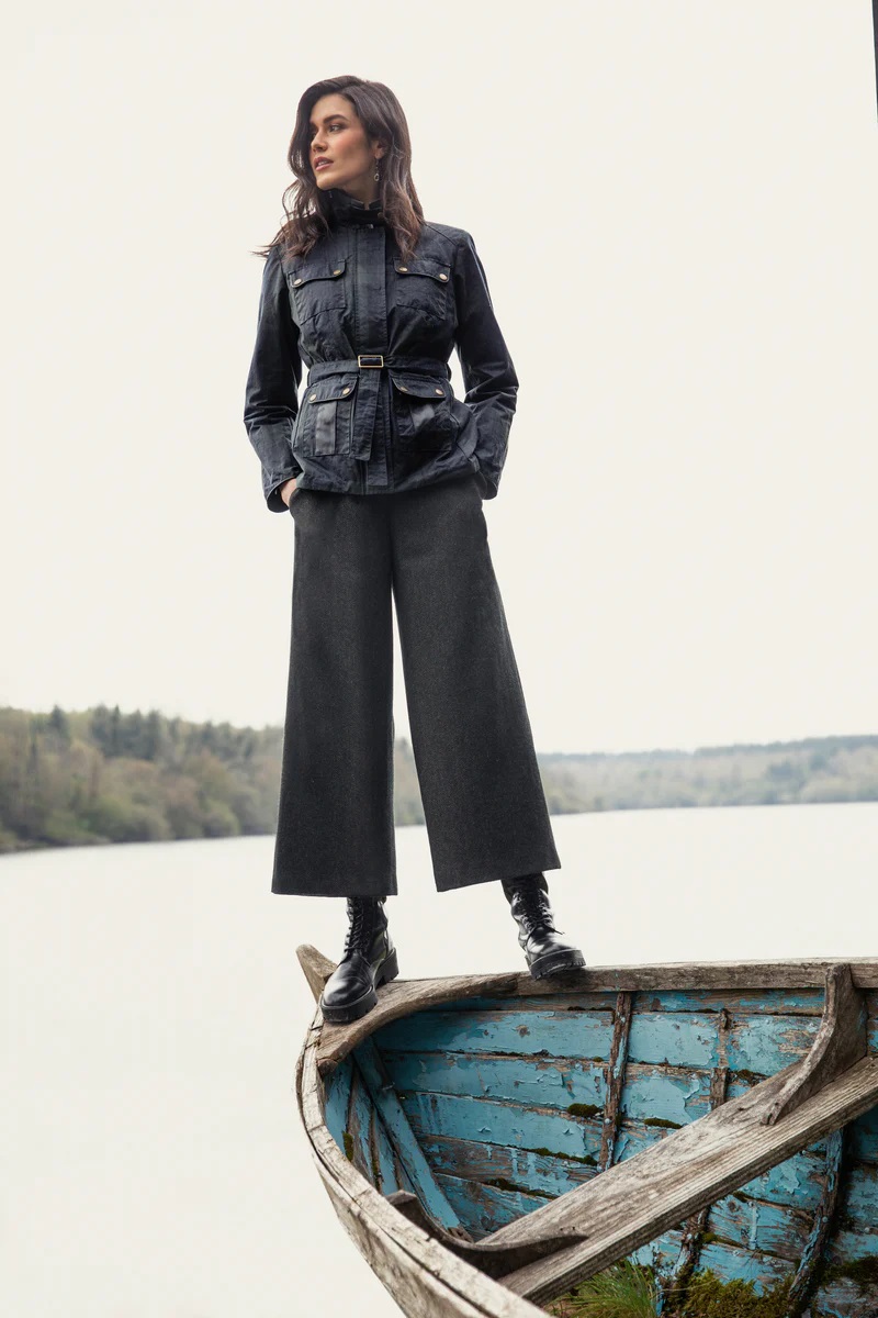 Jack Murphy Enya Tweed Culottes in Green Herringbone are a stylish blend of tailoring and heritage craftsmanship. Made from 100% wool tweed, these culotte trousers are designed to sit high on the waist and fall into a structured wide leg for a flattering, elegant silhouette. Crafted using Moon’s herringbone tweed, one of the last remaining vertical mills in the British Isles, they offer exceptional quality and timeless appeal. Perfect to pair with blazers, T-shirts or cosy Aran sweaters, these culottes transition effortlessly from smart to casual looks.