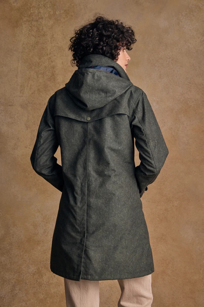 Waterproof jacket with elegant design and sustainable digital print. Stylish, practical and perfect for all-weather wear.