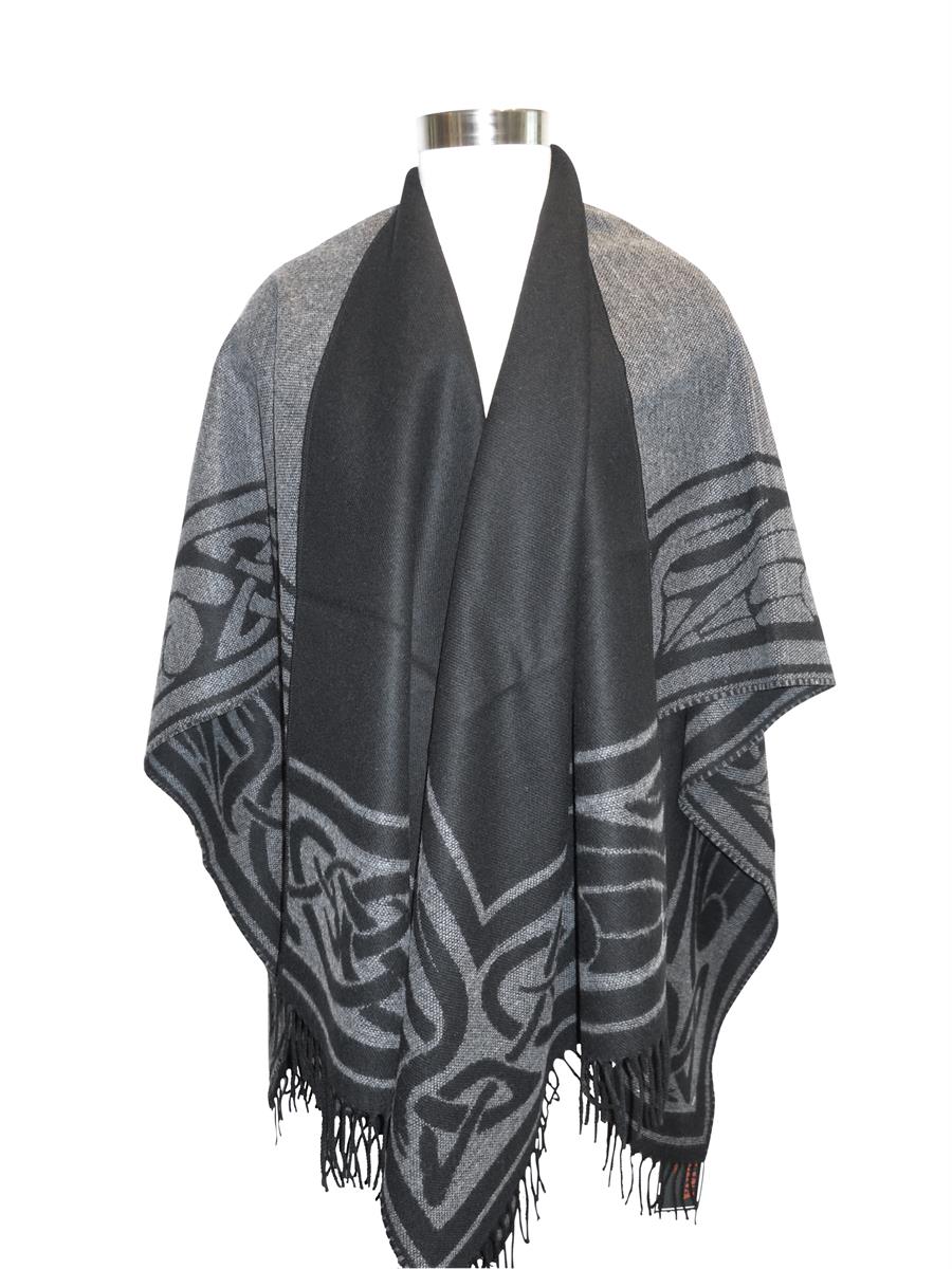 Jimmy Hourihan Celtic Border Shawl is a one-of-a-kind accessory inspired by the intricate knotwork and trinity designs of the Book of Kells. Reversible and finished with a fringed bottom, it comes in a sophisticated charcoal and black colourway. One size fits most, making it a versatile addition to any wardrobe. Effortlessly dress it up over a favourite dress or layer it casually with jeans. Perfect for nights out or for cozying up with a good book, this shawl blends timeless Celtic heritage with everyday practicality.