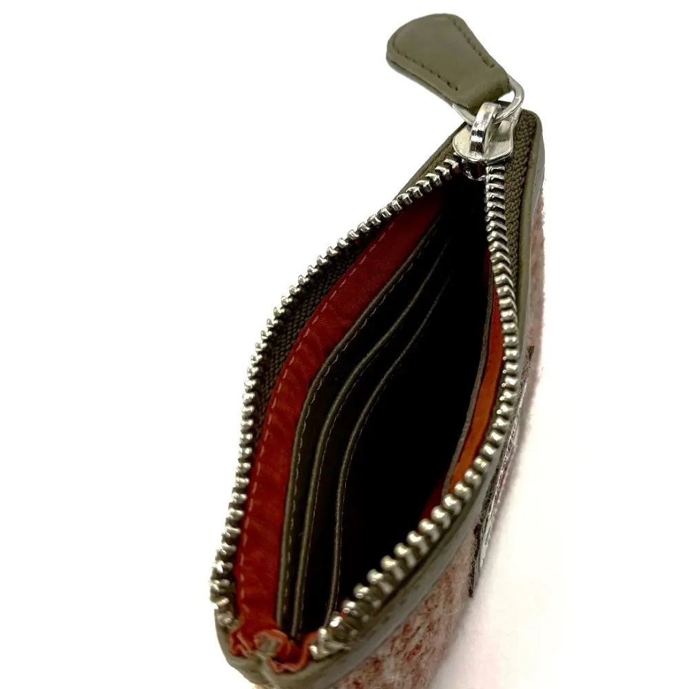 A small unique Harris Tweed coin purse is ideal for every day use. Our coin purse is secured with a zip top and is perfect for holding small change and a few cards. Our smallest Harris Tweed purse, this zip coin purse has space for 6-8 cards, notes and coins. You could also use this Harris Tweed purse as a small pouch for holding small items such as keys or bits and bobs.