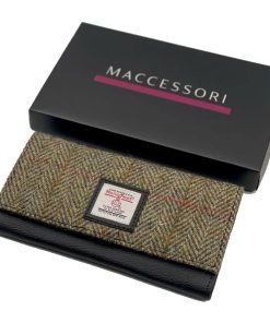 This timeless Harris Tweed envelope purse comes in a choice of Harris Tweed colors. The ladies purse is beautifully crafted from our in-house and unique Harris Tweeds. With envelope closure design on front, this large purse is eye-catching as well as practical. The Harris Tweed purse has 7 card slots inside, a zip compartment, 3 note/receipt compartments and a see through compartment for ID/bus passes.