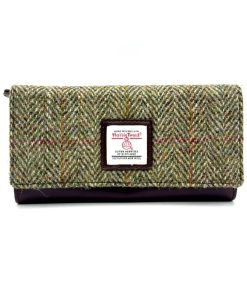 This timeless Harris Tweed envelope purse comes in a choice of Harris Tweed colors. The ladies purse is beautifully crafted from our in-house and unique Harris Tweeds. With envelope closure design on front, this large purse is eye-catching as well as practical. The Harris Tweed purse has 7 card slots inside, a zip compartment, 3 note/receipt compartments and a see through compartment for ID/bus passes.