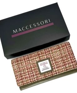 This timeless Harris Tweed envelope purse comes in a choice of Harris Tweed colors. The ladies purse is beautifully crafted from our in-house and unique Harris Tweeds. With envelope closure design on front, this large purse is eye-catching as well as practical. The Harris Tweed purse has 7 card slots inside, a zip compartment, 3 note/receipt compartments and a see through compartment for ID/bus passes.