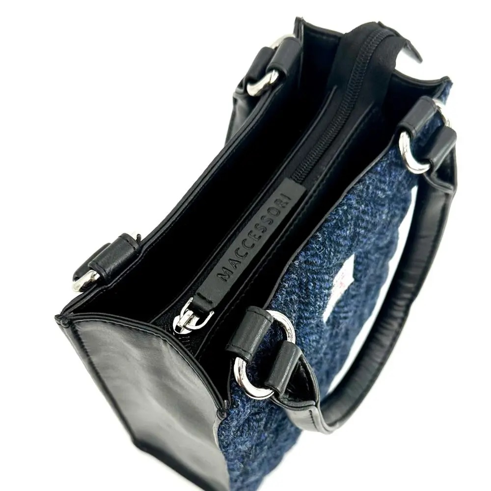 This stylish bag is made from diamond quilted Harris Tweed and is secured with a zip closure at the top. The Harris Tweed bag features a zip compartment on the reverse as well as an open pocket and a zip pocket on the inside. Medium-sized, it’s expertly proportioned to accommodate all your daily essentials with ease and style.