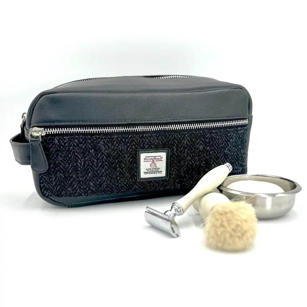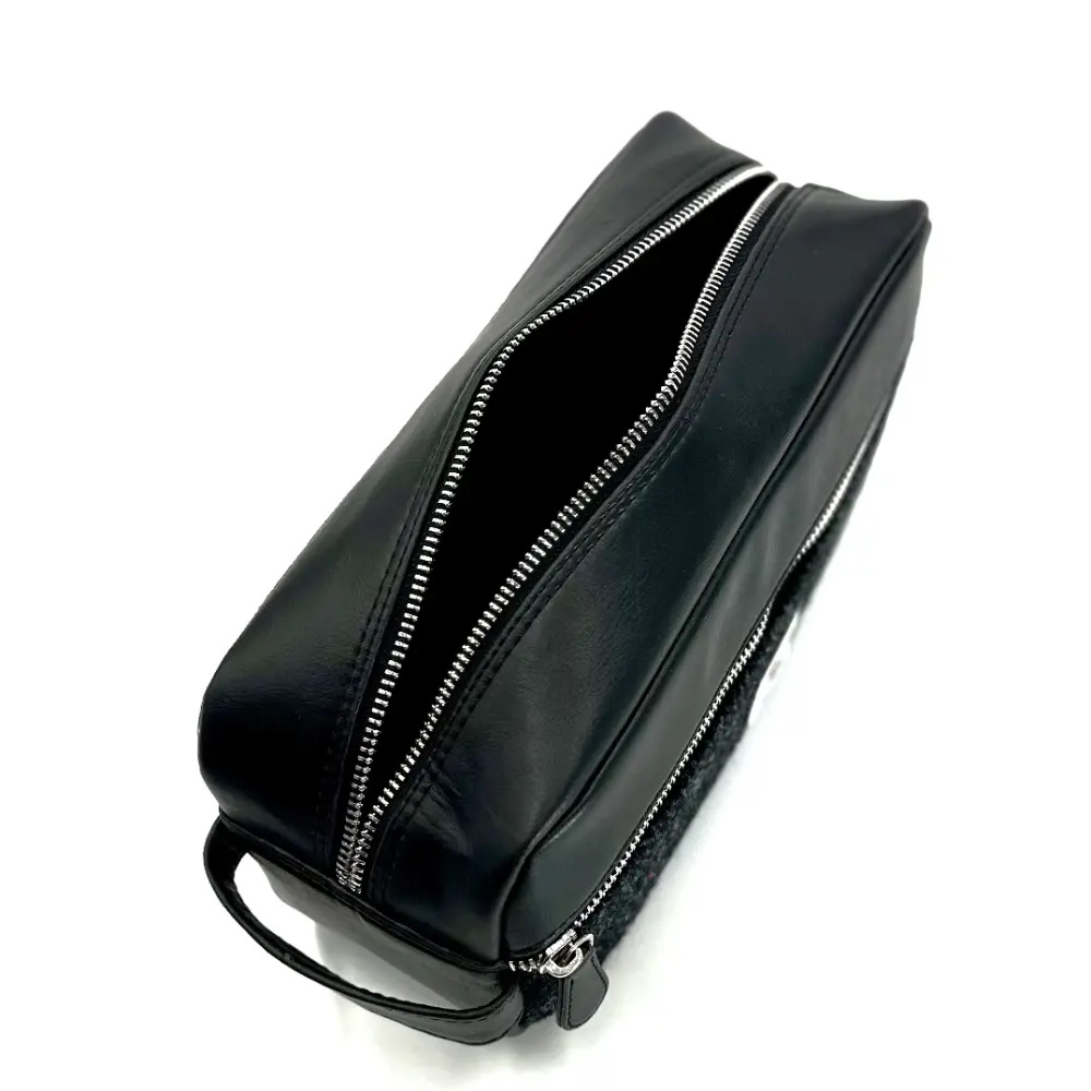 This generous Harris Tweed Wash Bag is great for all your toiletries. It also has an external zip compartment. You can chose from one of our own Harris Tweed designed patterns. Our men’s toiletry bag is perfect for travelling, allowing plenty of space for all your cosmetics/skincare/toiletries. Classic design and finished with our Genuine Harris Tweed, it makes a great Scottish Gift for yourself (or a loved one).