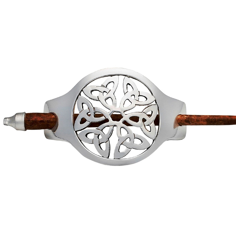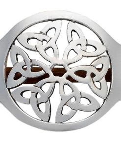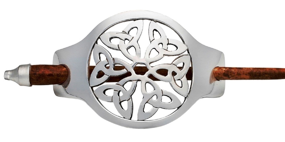 The Six Trinity Knot Hair Slide is a beautifully crafted accessory designed to hold hair securely while adding a touch of Celtic elegance. Featuring six intricately woven Trinity knots in silver plating, it is paired with a silver-plated tip wooden dowel for a secure and stylish fit. Perfect for daily wear or special occasions, this hair slide combines functionality with timeless Irish-inspired design.